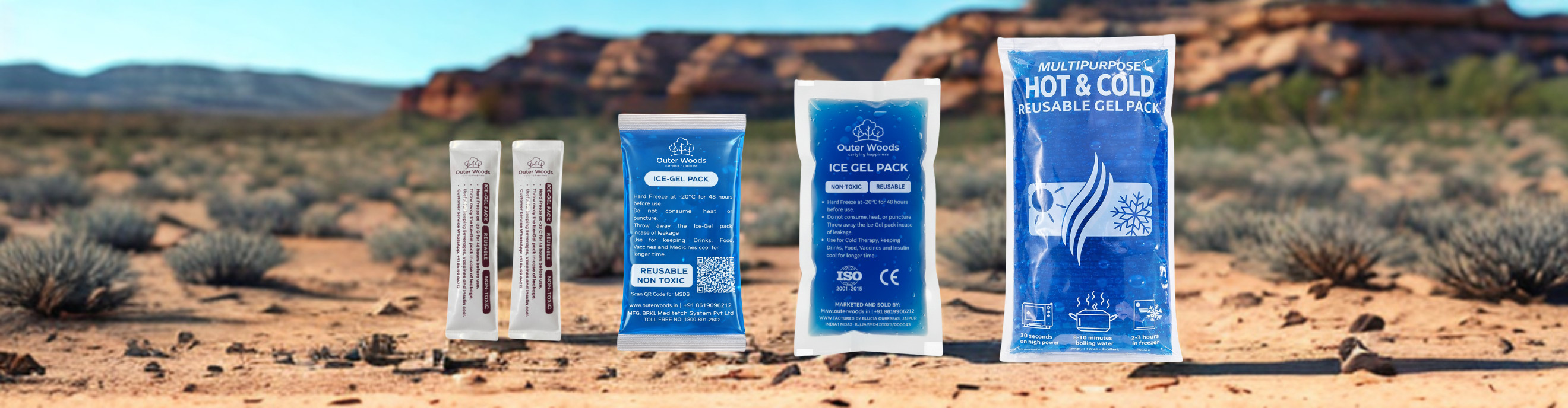 Outer Woods Ice Gel Packs 150ml | Set of 4 | Non-Toxic Leak-Proof Cold Gel Pads for Picnic, Travel, Vaccine, Insulin, Food & Drinks